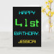 This simple and fun birthday greeting card design features a message like "HAPPY 41st BIRTHDAY, JESSICA!". Its look is inspired by the field of digital computing. The name on the front and the message on the inside can be customised. It could be sent or given to somebody who is celebrating their forty first birthday, and who perhaps works (or worked prior to retirement) as a computer system administrator, a computer programmer, a network administrator, an electrical engineer, a software developer, or who otherwise enjoys using computers. [~Z0000100]
