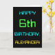 This simple and fun birthday greeting card design features a message like "HAPPY 6th BIRTHDAY, ALEXANDER!". Its look is inspired by the field of digital computing. The name on the front and the message on the inside can be customised. It could be sent or given to somebody who is celebrating their sixth birthday, and who perhaps works as a computer system administrator, a computer programmer, a network administrator, an electrical engineer, a software developer, or who otherwise enjoys using computers. [~Z0000100]