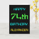 This simple and fun birthday greeting card design features a message like "HAPPY 74th BIRTHDAY, ALEXANDER!". Its appearance is inspired by the field of digital computing. The name on the front and the message on the inside can be customized. It could be sent or given to somebody who is celebrating their seventy-fourth birthday, and who perhaps works (or worked prior to retirement) as a computer programmer, a software developer, a database administrator, a network administrator, an electronics engineer, or who otherwise enjoys using computers. [~Z0000100]