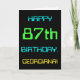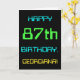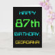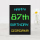 This simple and fun birthday greeting card design features a message like "HAPPY 87th BIRTHDAY, GEORGIANA!". It also features a fun look inspired by digital computing. The name on the front and the message on the inside can be personalized. It could be sent or given to somebody who is celebrating their eighty-seventh birthday, and who perhaps works (or worked prior to retirement) as a database administrator, a computer programmer, a network administrator, a software developer, an electrical engineer, or who otherwise enjoys using computers. [~Z0000100]