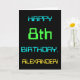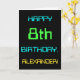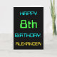 This simple and fun birthday greeting card design features a message like "HAPPY 8th BIRTHDAY, ALEXANDER!". Its appearance is inspired by the field of digital computing. The name on the front and the message on the inside can be personalised. It could be sent or given to somebody who is celebrating their eighth birthday, and who perhaps works as a computer system administrator, a computer programmer, a network administrator, an electrical engineer, a software developer, or who otherwise enjoys using computers. [~Z0000100]