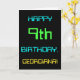 This simple and fun birthday greeting card design features a message like "HAPPY 9th BIRTHDAY, GEORGIANA!". Its look is inspired by the field of digital computing. The name on the front and the message on the inside can be customised. It could be sent or given to somebody who is celebrating their ninth birthday, and who perhaps works as a computer system administrator, a computer programmer, a network administrator, an electrical engineer, a software developer, or who otherwise enjoys using computers. [~Z0000100]