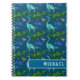 Fun Dinosaur Pattern Kids Blue Name School Notebook