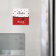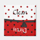 Pretty polka dot dishwasher magnet, with white and red polka dots, on the top, and a red with black polka dots, on the bottom. Graphics of a black ribbon, in the middle. White text reads Dirty and black text reads Clean. Makes a great hostess gift.