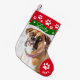 Pet Christmas stockings for dogs? Of course! Christmas dog gifts are very popular and essential for any dog lover. If you have several dogs in your family then get a dog Christmas stocking for each dog and fill it with dog treats, dogs toys and maybe even a personalised dog collar. Add your dog's name and photo to this personalised Christmas stocking for dog owners. Christmas stockings for pets are very popular and perfect gifts for Boxer dog lovers and Dog Moms. A personalised pet Christmas stocking is perfect for new puppy families during the holidays.
