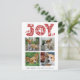 Celebrate the Holiday with this chic, cute and lovely minimalist holiday card. This card features a four (4) of your favourite pet photos in a simple collage layout. Above photos features the letter " JOY " with doggie paws in sparking snowflakes pattern in red. Below photos features your custom greeting message and your names & dog name in modern typography. Happy Holidays and Happy New Year !