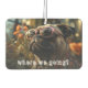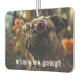 "Where we going?" text over a cute dog photo (can be changed to your dog) on a fun air freshener. An affordable gift for family, friends or create for yourself, they are double-sided and available in different shapes and several amazing long lasting, odour eliminating scents.