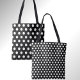 Classic polka dot pattern tote with black background and white dots.