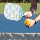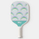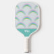This design features dreamy pastel rainbows against a pale aqua background, with white initials in a fun text style against an aqua colour block. This fun pattern is great way to personalise your pickleball paddle and send your dinks over the rainbow. The paddle is shown with white trim, but other options are offered.