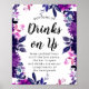 Enchanted Floral Purple Flowers Leaves Stems and Vines Watercolor Bottoms Up Drinks on Us Open Bar Wedding Reception Sign