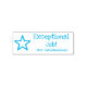 This inspiring rubber stamp design features the motivational feedback message "Exceptional Job!" and a customised educator's name. It also features a decorative star shape icon. It could be used by a school teacher, educator, instructor, or tutor when marking assignments, to indicate that the student has done a great job.