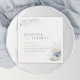 Elegant under the sea themed beach wedding napkins feature dusty blue watercolor coral & seashells, stylish script and classy font fun facts, modern and romantic, great for sea themed summer beach wedding, winter tropical destination wedding, coastal ocean themed party.