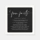 Add a playful touch to your special day with our 'Fun Facts' wedding napkins, customised with charming anecdotes from your unique love story. Crafted with elegance and minimalism, this set features a modern non-serif font and hand-lettered 'fun facts'. It's more than just a napkin - a conversation starter, a smile-sparker, a keepsake. Picture your guests unfolding them to reveal delightful snippets of your journey together - how you met, your shared hobbies, funny memories, and traditions. Ideal for couples who embrace fun and want to infuse their celebration with personal touches, these napkins bring the stories that define you to every table at your wedding."
