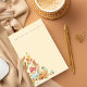 Super fun and cute design perfect for the fall and autumn season. We've illustrated this imaginative and fun fairy garden village with mushroom and pumpkin houses nestled together within the lush fall flowers and foliage. Autumn coloured fall oak leafs blowing in the wind set on a light pale yellow background. Personalise with name. Original artwork by Moodthology Papery
