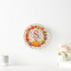 Fun fall pumpkin wreath polka dot teal orange cute round clock