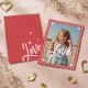 Create a Valentine’s card as unique as your love! This photo Valentine’s card lets you add your full photo—or include your kids’ photo or your family—for a fun and personalized look! The front features a bold red border with a decorative frame and hearts in each corner, while the word “Love” is displayed prominently in a bold script font. You can also personalize the card with your name to make it truly unique. The reverse side continues the romantic theme with a bold red background, hearts, and “Love” typography for a cohesive and striking design. Perfect for sending to friends, family, or loved ones, this card combines fun personalization, heartfelt sentiment, and bold, modern design. Design by ©Moodthology Papery.