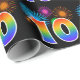 This fun, vibrant wrapping paper design features a colourful celebratory fireworks inspired pattern, along with the number "10" featuring a multicolored rainbow inspired gradient pattern, on a black coloured background. Wrapping paper like this could perhaps be used when wrapping gifts or presents being given for somebody’s tenth birthday, or perhaps for a couple’s tenth wedding anniversary, or some other 10th event. [~Z0000322]