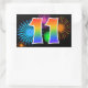 Fun Fireworks + Rainbow Pattern "11" Event Number Rectangular Sticker