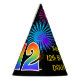 This fun, vibrant birthday party hat design features a colourful bursting celebratory fireworks inspired pattern, along with the number "12" having a multicolored rainbow inspired spectrum or gradient pattern. It also features a personalised name and event message, such as a "Happy Birthday" birthday greeting. A birthday-themed paper hat like this might be worn by the attendees at a birthday party being held to celebrate somebody’s twelfth birthday. [~Z0000333]