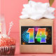 Fun Fireworks + Rainbow Pattern "14" Event Number Rectangular Sticker