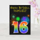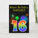 Fun Fireworks + Rainbow Pattern "16" Birthday # Card