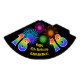 This fun, vibrant birthday party hat design features a colourful pattern inspired by bursting celebratory fireworks, along with the number "16" having a multicolored rainbow inspired spectrum or gradient pattern. It also features a customisable name and event message, such as a "Happy Birthday" birthday greeting. A birthday-themed paper hat like this might be worn by the attendees at a birthday party being held in celebration of somebody’s sixteenth birthday. [~Z0000333]