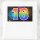 Fun Fireworks + Rainbow Pattern "16" Event Number Rectangular Sticker