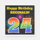 This fun, vibrant paper napkin design features a colourful celebratory fireworks inspired pattern, along with the number "24" featuring a multicolored rainbow like gradient pattern, on a black coloured background. It also features a custom name and event message. Paper napkins like this might be used at a birthday party being held to celebrate somebody’s twenty fourth birthday. [~Z0000326]