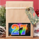 This fun, vibrant sticker design features a colourful celebratory fireworks inspired pattern, along with the number "27" having a multicolored rainbow like gradient pattern, on a black coloured background. Stickers like this might be used at a party celebrating somebody’s twenty seventh birthday, or perhaps for a couple’s twenty seventh wedding anniversary, or some other 27th event. [~Z0000324]