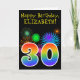 Fun Fireworks + Rainbow Pattern "30" Birthday # Card