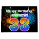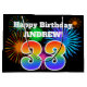 This fun, vibrant gift bag design features a colourful pattern inspired by celebratory fireworks, along with the number "33" having a multicolored rainbow like gradient pattern, on a black coloured background. It also features a personalised name and event message, such as a birthday greeting. A colourful and joyful gift bag like this might be used when giving a gift or present to somebody who is celebrating their thirty third birthday. [~Z0000328]