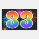 Fun Fireworks + Rainbow Pattern "33" Event Number Rectangular Sticker