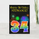 Fun Fireworks + Rainbow Pattern "34" Birthday # Card