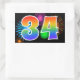 This fun, vibrant sticker design features a colourful celebratory fireworks inspired pattern, along with the number "34" featuring a multicolored rainbow like gradient pattern, on a black coloured background. Stickers like this might be used at a party celebrating somebody’s thirty fourth birthday, or perhaps for a couple’s thirty fourth wedding anniversary, or some other 34th event. [~Z0000324]