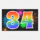 Fun Fireworks + Rainbow Pattern "34" Event Number Rectangular Sticker