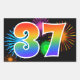Fun Fireworks + Rainbow Pattern "37" Event Number Rectangular Sticker