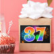 This fun, vibrant sticker design features a colourful celebratory fireworks inspired pattern, along with the number "37" featuring a multicolored rainbow inspired gradient pattern, on a black coloured background. Stickers like this might be used at a party celebrating somebody’s thirty seventh birthday, or perhaps for a couple’s thirty seventh wedding anniversary, or some other 37th event. [~Z0000324]