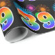 This fun, vibrant wrapping paper design features a colourful celebratory fireworks inspired pattern, along with the number "39" having a multicolored rainbow like gradient pattern, on a black coloured background. Wrapping paper like this could perhaps be used when wrapping presents or gifts being given for somebody’s thirty ninth birthday, or perhaps for a couple’s thirty ninth wedding anniversary, or some other 39th event. [~Z0000322]