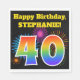 This fun, vibrant paper napkin design features a colourful pattern inspired by celebratory fireworks, along with the number "40" having a multicolored rainbow inspired gradient pattern, on a black coloured background. It also features a personalised name and event message. Paper napkins like this could perhaps be used at a party being held to celebrate somebody’s fortieth birthday. [~Z0000326]