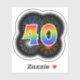 This fun, exciting sticker design features a colourful bursting celebratory fireworks inspired pattern, along with the number "40" having a multicolored rainbow inspired spectrum or gradient pattern. An exciting sticker like this might be used when celebrating somebody’s fortieth birthday, or perhaps a couple’s fortieth wedding anniversary, or some other 40th event. [~Z0000362]