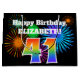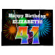 This fun, vibrant gift bag design features a colourful pattern inspired by celebratory fireworks, along with the number "41" having a multicolored rainbow like gradient pattern, on a black coloured background. It also features a personalised name and event message, such as a birthday greeting. A gift bag like this might be used to wrap a present or gift being given in celebration of somebody’s forty first birthday. [~Z0000328]