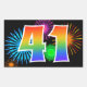 Fun Fireworks + Rainbow Pattern "41" Event Number Rectangular Sticker