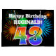 This fun, vibrant gift bag design features a colourful celebratory fireworks inspired pattern, along with the number "43" featuring a multicolored rainbow inspired gradient pattern, on a black coloured background. It also features a custom name and event message, such as a birthday greeting. A gift bag like this might be used to wrap a present or gift being given in celebration of somebody’s forty third birthday. [~Z0000328]