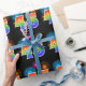 This fun, vibrant wrapping paper design features a colourful celebratory fireworks inspired pattern, along with the number "45" featuring a multicolored rainbow inspired gradient pattern, on a black coloured background. Wrapping paper like this might be used when wrapping gifts or presents being given for somebody’s forty fifth birthday, or perhaps for a couple’s forty fifth wedding anniversary, or some other 45th event. [~Z0000322]