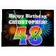 This fun, vibrant gift bag design features a colourful celebratory fireworks inspired pattern, along with the number "48" having a multicolored rainbow like gradient pattern, on a black coloured background. It also features a custom name and event message, such as a birthday greeting. A gift bag like this might be used to wrap a present or gift being given in celebration of somebody’s forty eighth birthday. [~Z0000328]