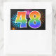 This fun, vibrant sticker design features a colourful celebratory fireworks inspired pattern, along with the number "48" having a multicolored rainbow inspired gradient pattern, on a black coloured background. Stickers like this might be given as a small gift while celebrating somebody’s forty eighth birthday, or perhaps for a couple’s forty eighth wedding anniversary, or some other 48th event. [~Z0000324]