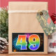 This fun, vibrant sticker design features a colourful pattern inspired by celebratory fireworks, along with the number "49" having a multicolored rainbow inspired gradient pattern, on a black coloured background. Stickers like this might be used at a party celebrating somebody’s forty ninth birthday, or perhaps for a couple’s forty ninth wedding anniversary, or some other 49th event. [~Z0000324]