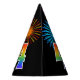 Fun Fireworks + Rainbow Pattern "4" Birthday # Party Hat