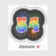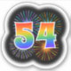 This fun, exciting sticker design features a colourful bursting celebratory fireworks inspired pattern, along with the number "54" featuring a multicolored rainbow inspired spectrum or gradient pattern. An exciting sticker like this might perhaps be used when celebrating somebody’s fifty fourth birthday, or perhaps a couple’s fifty fourth wedding anniversary, or some other 54th event. [~Z0000362]