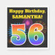 This fun, vibrant paper napkin design features a colourful celebratory fireworks inspired pattern, along with the number "56" having a multicolored rainbow like gradient pattern, on a black coloured background. It also features a custom name and event message. Paper napkins like this might be used at a birthday party being held to celebrate somebody’s fifty sixth birthday. [~Z0000326]